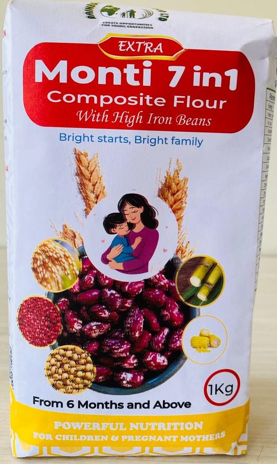 Monti 7in1 is highly nutritious porridge it blends seven key ingredients—High-Iron Beans, Roasted Maize, Roasted wheat, Roasted soybeans, rice, sugar, and Roasted groundnuts